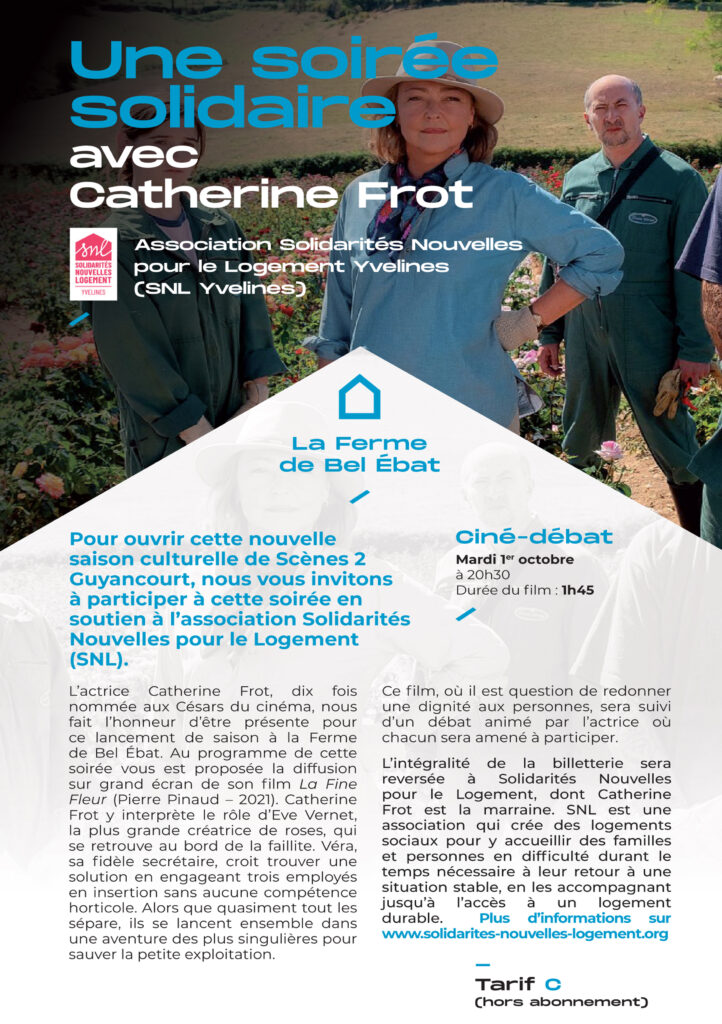 Le 1er octobre le GLS de Saint-Quentin-en-Yvelines recevait une invitée de marque en la personne de Catherine Frot, la marraine de notre association. L’actrice, dix fois nommée au César était présente, non pas pour jouer sur les planches mais pour échanger lors d’une soirée autour de son film La Fine fleur, sorti en 2021, après la diffusion de celui-ci dans la salle.