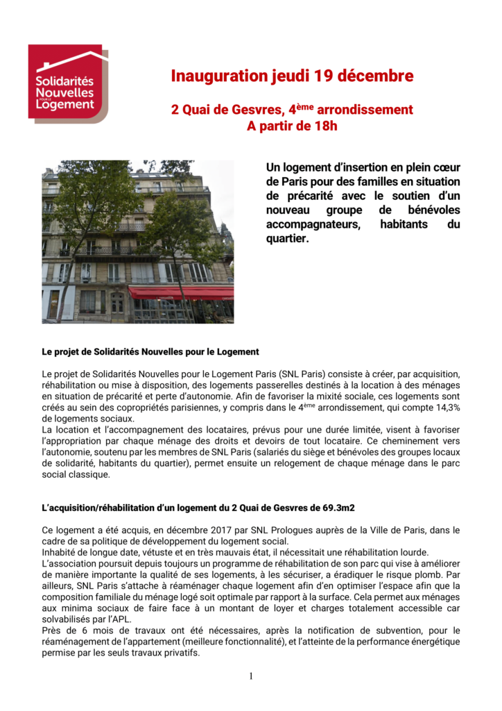 #SNLParis a inauguré un nouveau logement d’insertion quai de Gesvres, dans le 4ème arrondissement.